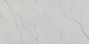 Faint linear veining on luminous white quartz adds quiet sophistication and calm, ideal for serene or striking interiors.