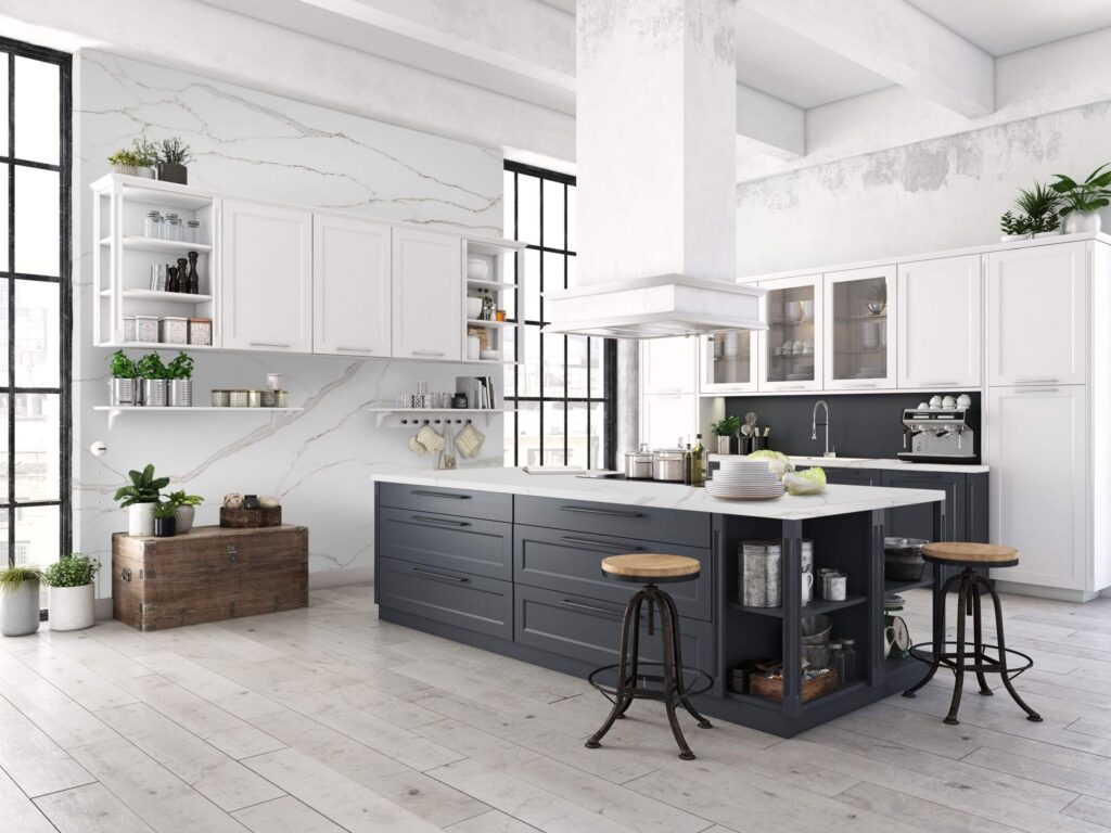 A white background with thin, organic gray veining delivers a classic, timeless marble appeal, offering the quiet luxury, organic beauty, and advanced durability of quartz, serving as a tranquil backdrop or a bold centerpiece in any design.