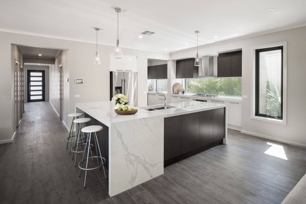 Bold gray veins on bright white quartz create a striking yet natural aesthetic, balancing drama with lasting durability